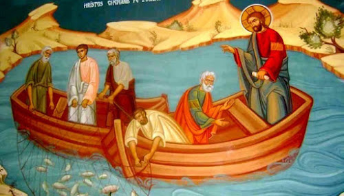 Σήμερα το ανάγνωσμα που ακούσαμε από το Ευαγγέλιο του Αποστόλου Ματθαίου, μας παρουσιάζει τον Κύριό μας να περπατά στην παραλία της λίμνης της Γαλιλαίας, η οποία ονομάζεται εξαιτίας του μεγέθους της και θάλασσα. Εκεί είδε δύο αδέλφια, τον Πέτρο και τον Ανδρέα, να ρίχνουν τα δίχτυα τους στη λίμνη, διότι ήταν ψαράδες και τους είπε: «Ελάτε μαζί μου». Εκείνοι άφησαν αμέσως, χωρίς δεύτερη σκέψη, τα δίχτυα τους και ακολούθησαν έως τον θάνατό τους τον Ιησού Χριστό. Λίγο πιο κάτω ο Κύριος  συνάντησε άλλους δύο αδελφούς τον Ιάκωβο και τον Ιωάννη, οι οποίοι μέσα σ΄ ένα πλεούμενο τακτοποιούσαν τα δίχτυα τους, καθώς ήσαν επίσης ψαράδες, και τους κάλεσε να Τον ακολουθήσουν. Αμέσως και αυτοί εγκατέλειψαν τον πατέρα τους και ακολούθησαν τον Ιησού Χριστό μέχρι τον θάνατό τους.